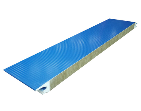 3.強度優良:聚氨酯封邊巖棉板材料與兩層鋼板一體粘合,在共同作業的基礎上,再從頂板的上面加入波壓模具。其整體的剛度與夾有壓模夾板的巖棉(玻璃絲棉)的現場的復合板材相比相差甚遠。通過連接條和板卡進行固定,大幅提高了頂面整體的剛性,強化了頂面整體的工作性能。因為選擇巖棉的芯板,能采用大的螺距,能節約分片量的1/3 ~ 2/3。